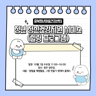 충북청년마음건강센터 행사 일정을 알려드립니다.